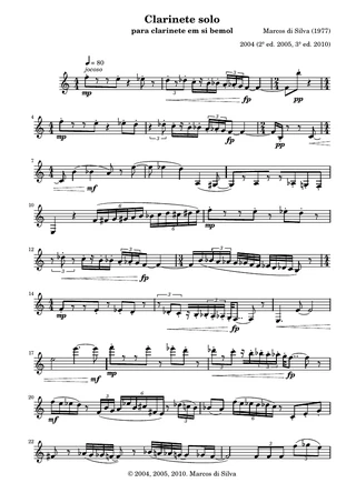 The piece Clarinet solo was premiered by Pedro Robatto in November 11th, 2004, in a recital of the Série Brasil, at the Rectory of the Federal University of Bahia.