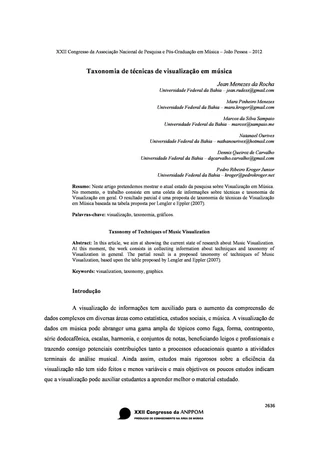 In this article, we aim at showing the current state of research about Music Visualization. At this moment, the work consists in collecting information about techniques and taxonomy of Visualization in general. The partial result is a proposed taxonomy of techniques of Music Visualization, based upon the table proposed by Lengler and Eppler (2007).