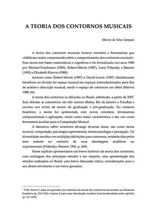 A teoria dos contornos musicais Oct 19, 2024· Marcos da silva sampaio · 0 min read PDF Cite publication Last updated on Oct 19, 2024 Contornos Musicais Brasil Authors Marcos da silva sampaio ← Schoenberg, Suite Op. 25, Präludium - um estudo de propriedades intervalares, encadeamentos por semitom e distribuição estatística Dec 29, 2024 A comprovisação a partir de contornos fotográficos na polimicrotonalidade da peça Topografia nas Vizinhanças das Dunas de Stella Maris, para orquestra de violões Oct 27, 2023 →